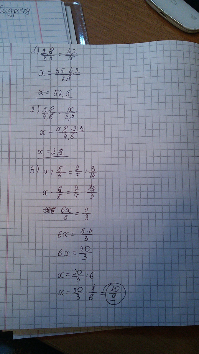 2) 5,8 / 4,6 = Х / 2,3 - если что это двухэтажные дроби