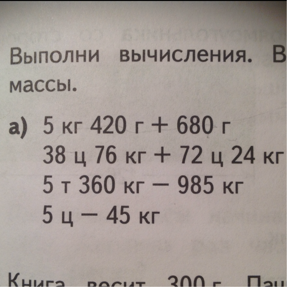 5 кг.420 г.+ 680 г.=6 кг. 100 г. 38 ц. 76 кг. + 72 ц. 24 кг.= 111 ц. 5 т. 360 кг.–985 кг. =4 т.375 кг. 5 ц.– 45 кг. = 4 ц. 55 кг