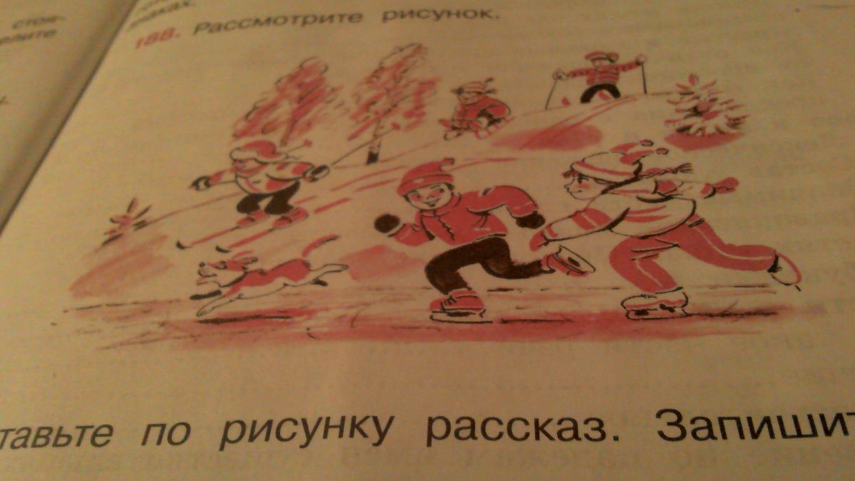 Наступила зима.Птицы улетели в тёплые края.Утром всё покрылось белым снегом.Ваня и Катя решили пойти покататься на коньках.