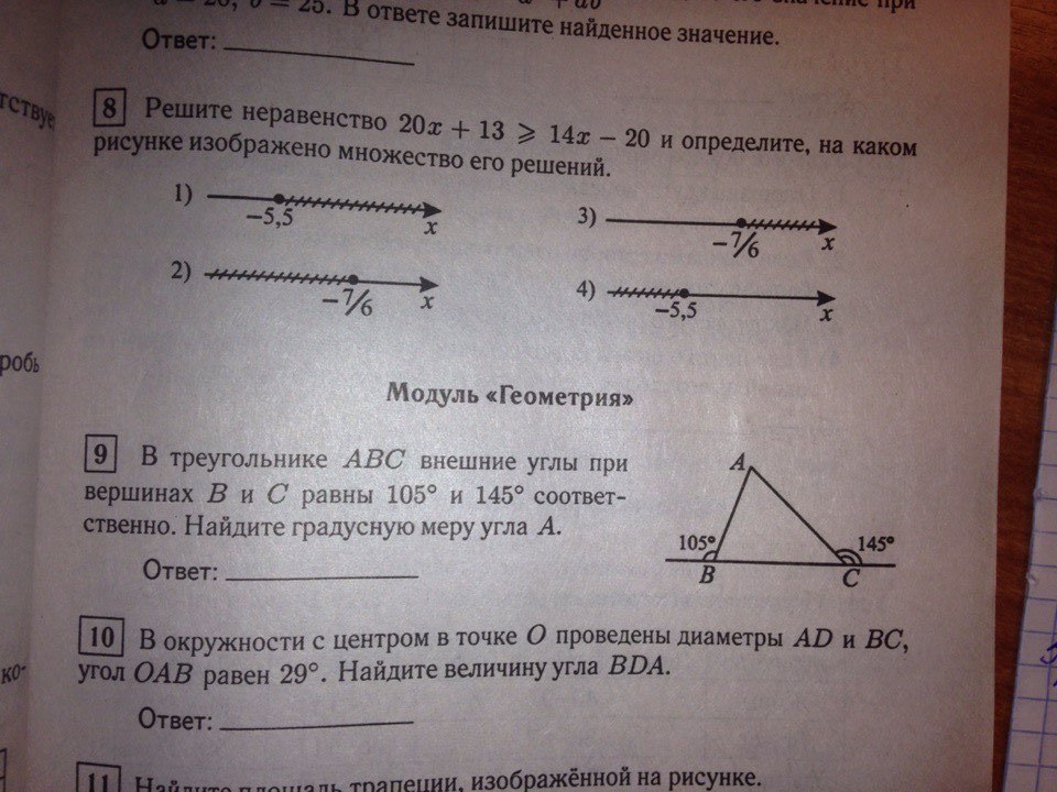 3) если центральный угол АОВ равен 29*, то угол ВДА меньше центрально в 2раза по его свойству, и равен 29/2=14,5*