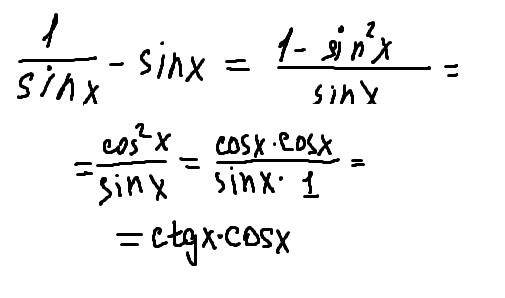 (1-sin^2x)/sinx=cos^2x/sinx=cosx*cosx/sinx=cosx*ctgx