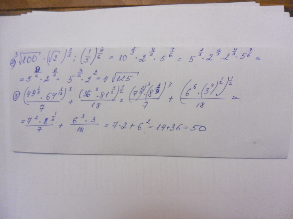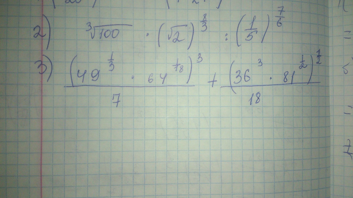 (49^(⅓*3) *64^(1/18*3))/7+(36^(³*½) * 81^(½*½))/18= (49* 64^1/6)/7+(36^(3/2)*81^¼)/18= (49*2)/7+((36*6)*3)/18= 14+36=50