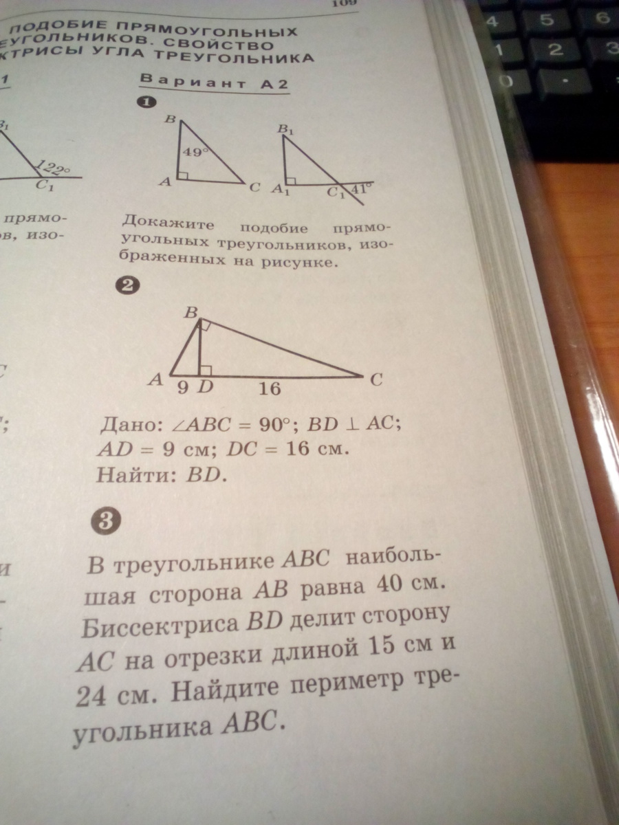 1- й признак подобия прямоугольных треугольников )Если прямоугольные треугольники имеют равный острый угол, то такие треугольники подобны.