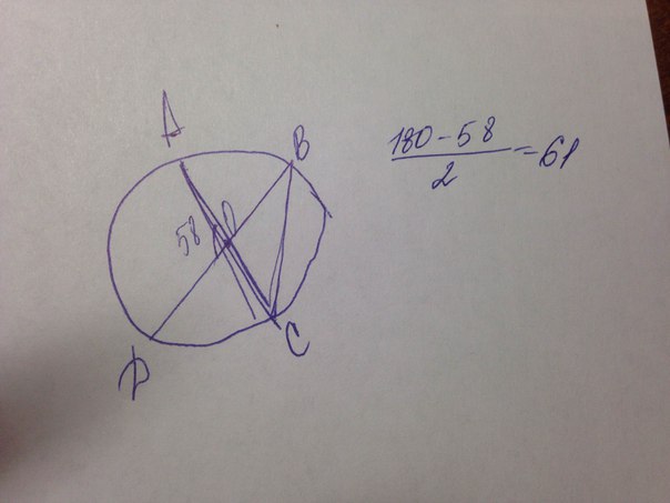 В окружности с центром О, АС и ВD-диаметры, центральный угол АОD равен 58°. Найдите вписанный угол АСВ?