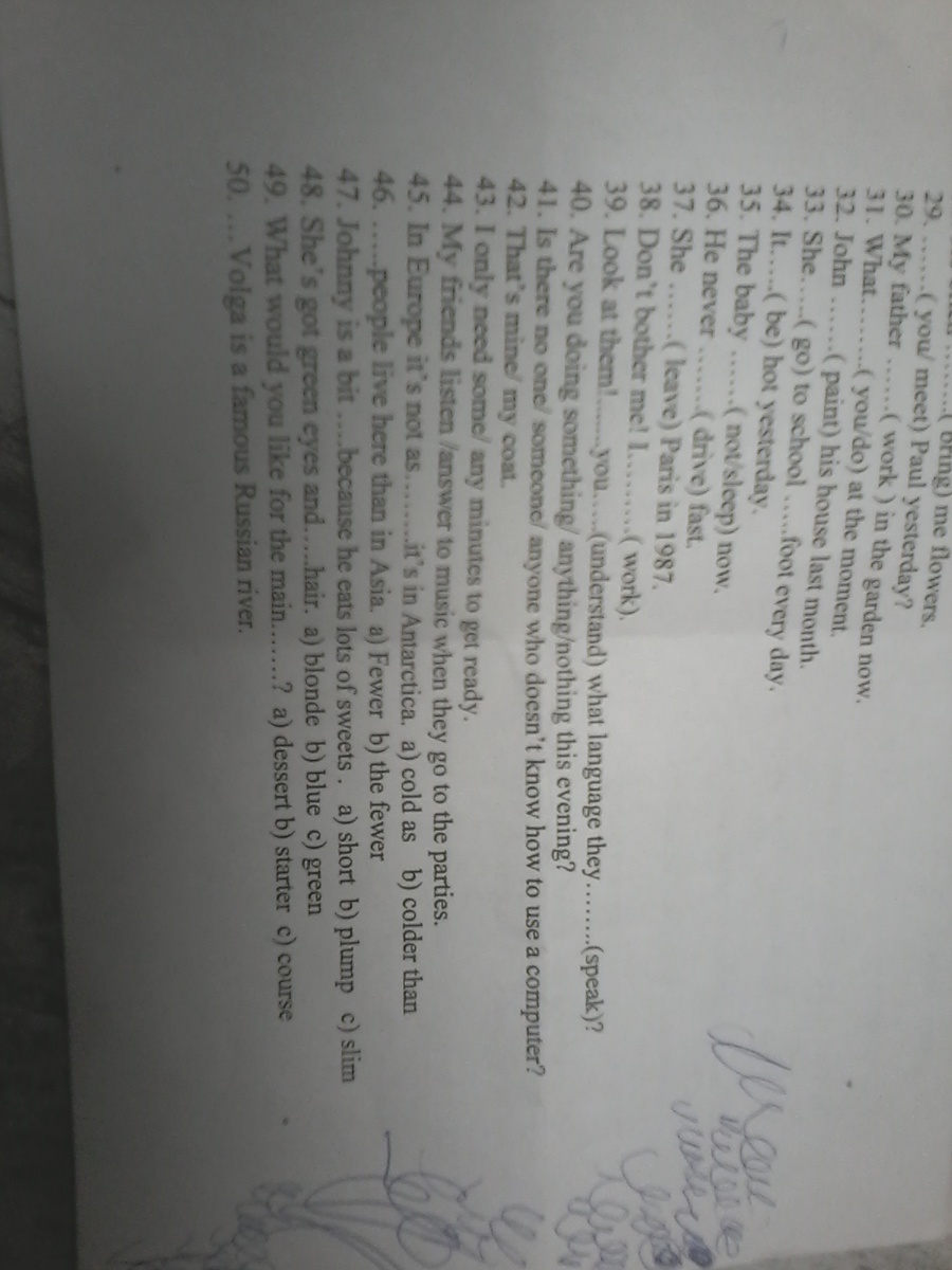 29.did you meet.30.father is working..31. What are you doing..