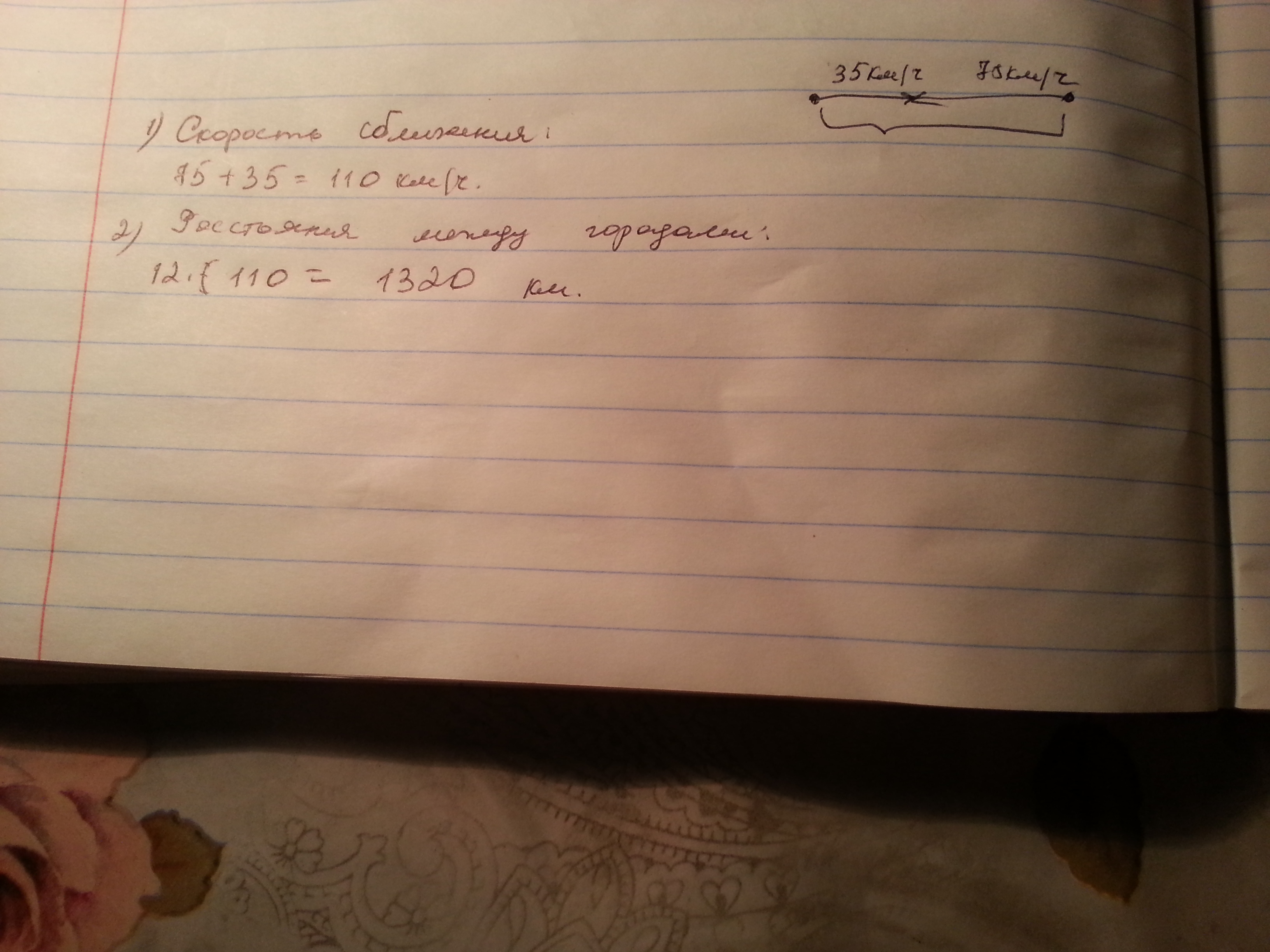 Из двух городов одновременно навстречу друг другу отправились пассажирский и товарный поезда.Они встретились через 12 часов. Определи расстояние между городами,если известно,что скорость пассажирского поезда 75 км/ч, а товарного 35 км/ч.