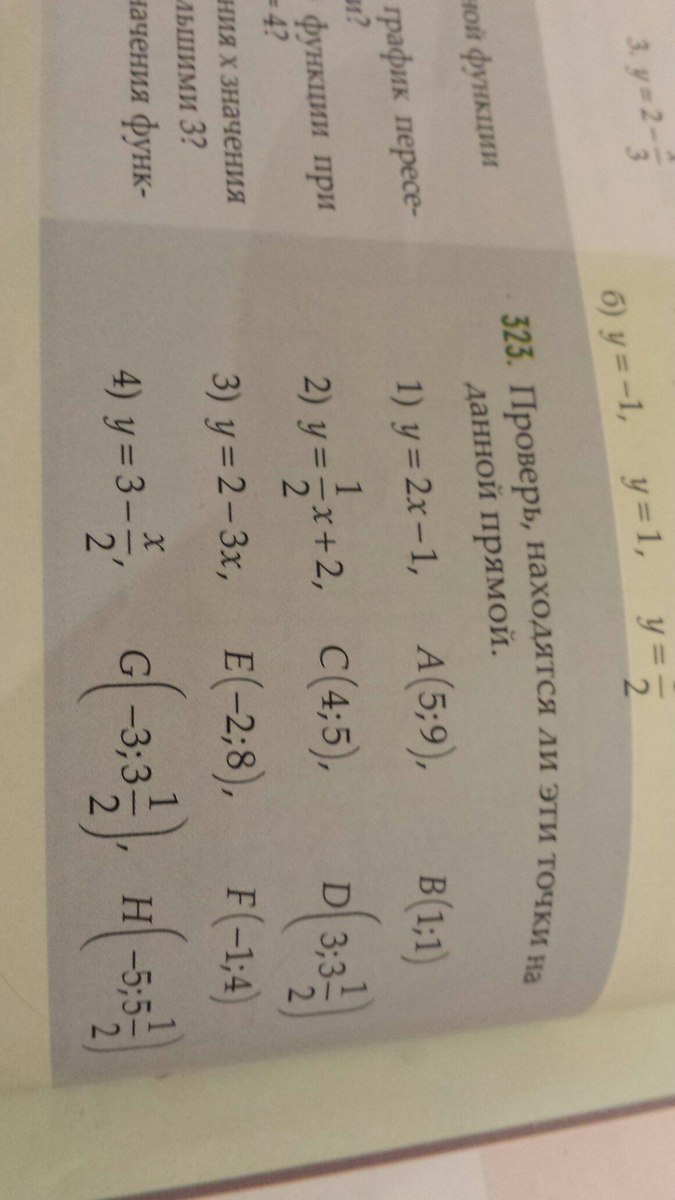 9=9 следовательно точка (5;9) лежит на прямой и т.д.