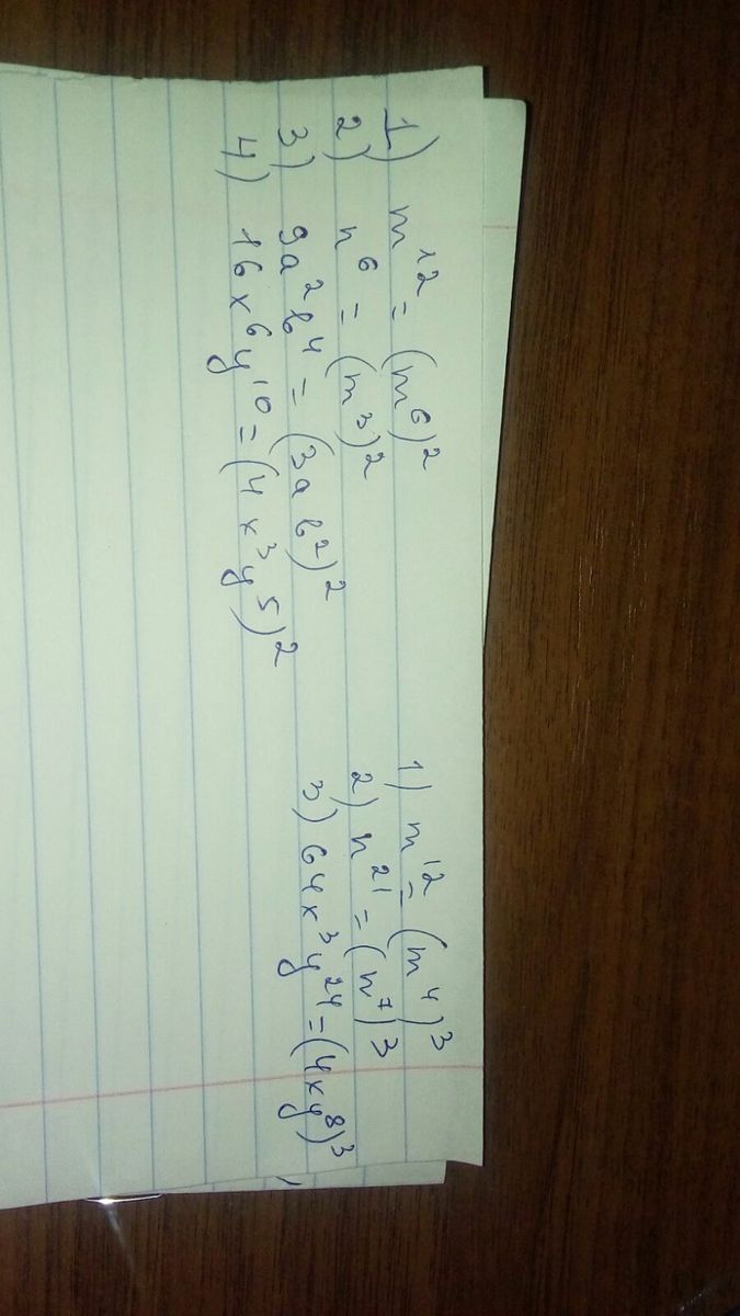1)m^12 2)n^6 3)9a^2b^4 4)16x^6y^10