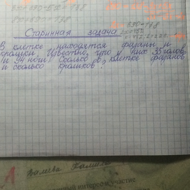 x -фазаны, y - кролики