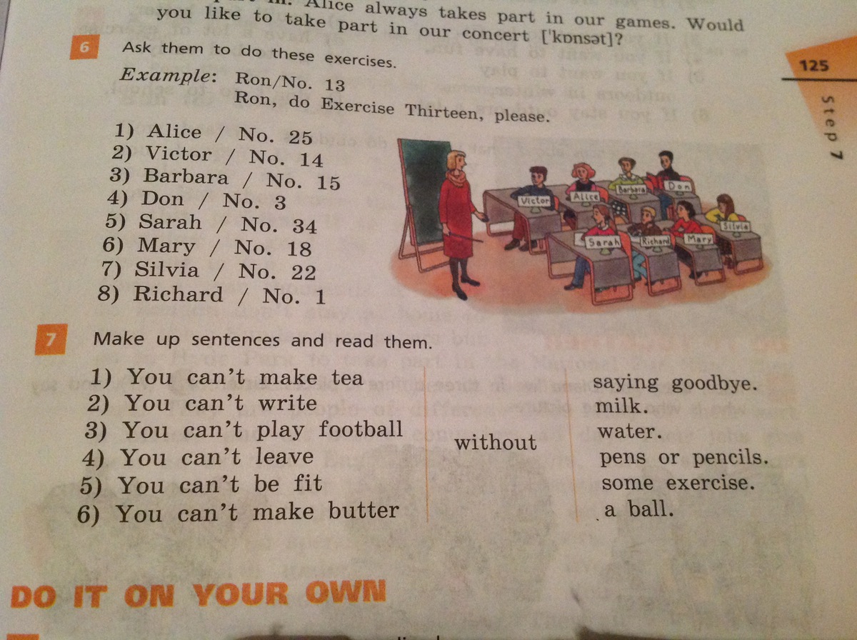 1) Alice, do Exercise Twenty Five, please. - Алиса, сделай упражнение двадцать пять, пожалуйста.