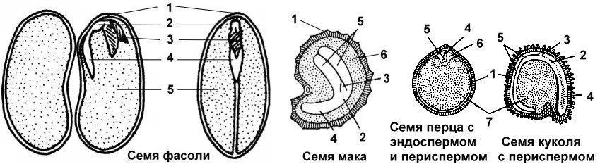 нужно написать части семян двудольных растений ))