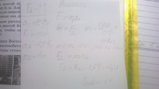 Сила 10 Н сообщает телу ускорение 10 м/с2. Какая сила сообщит телу в четыре раза большей массой ускорение 1,5 м/с2?