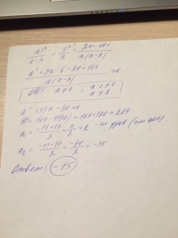 (x^2+3x-6)/(x^2-2x)=(24-10x)/(x^2-2x) ОДЗ: xне=0 и х-2не=0