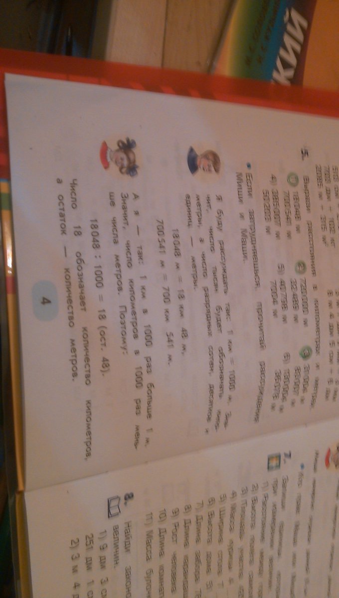 18048м =18км 48 м 700541м = 700км 541м 720000= 720км 31004м =31км 4 м 83007м = 83км 7м