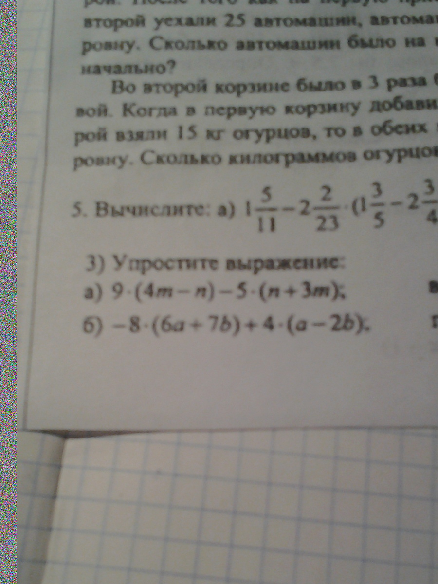 а) 9(4m-n) - 5(n+3m) = 36m-9n-5n-15m = 21m - 14n = 7(3m-2n)