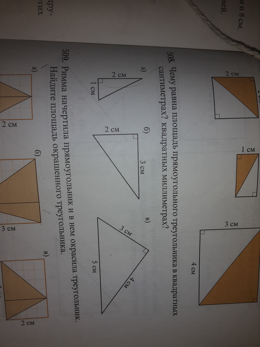 1/2*1*2=1см2 =100мм2 1/2*2*3=3см2 =300мм2 1/2*3*4=6 см2 =600мм2