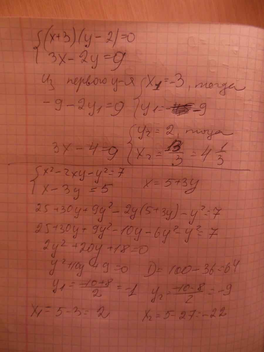 второй метод подстановки, а первый: первое уравнение может =0, только когда один из сомножителей равен0