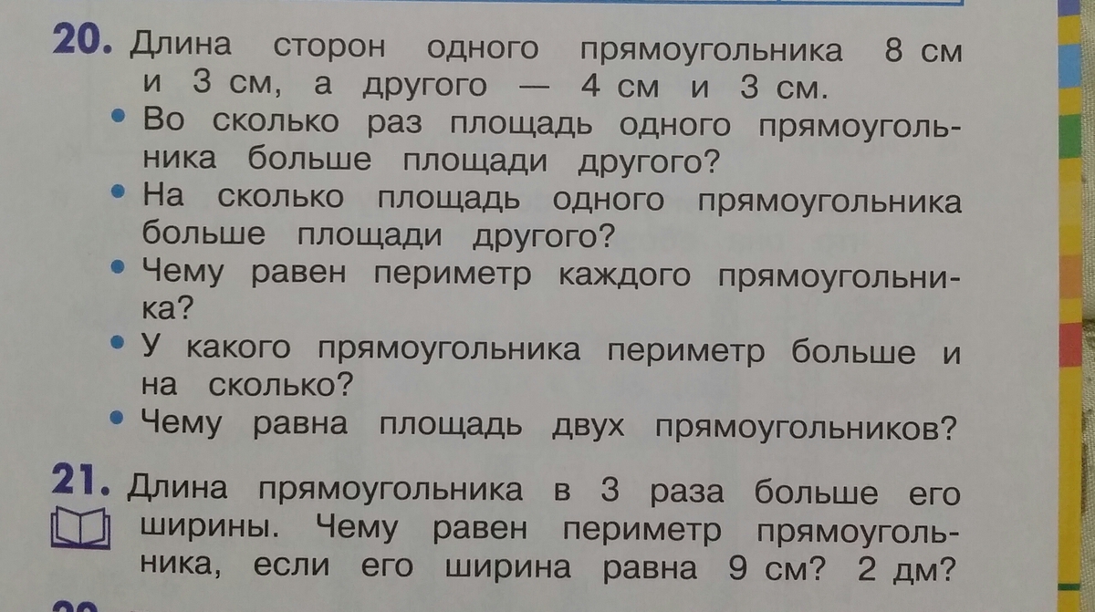 номер 20 : 8*3= 24 (cм) - площадь первого.