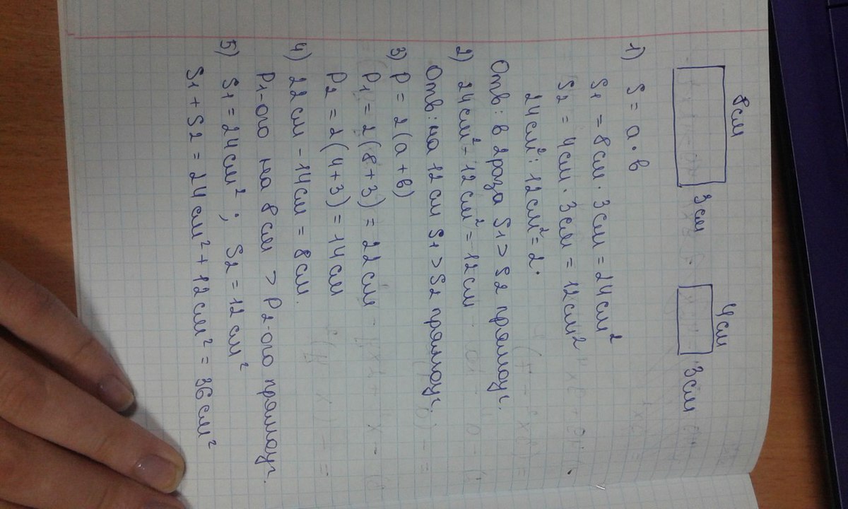 4 * 3 = 12 (см) - площадь второго.