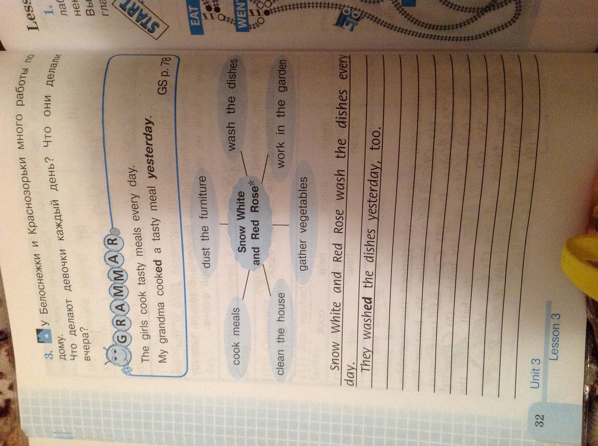 Snow White and Red Rose gather vegetables every week. They gathed vegetables at last week.