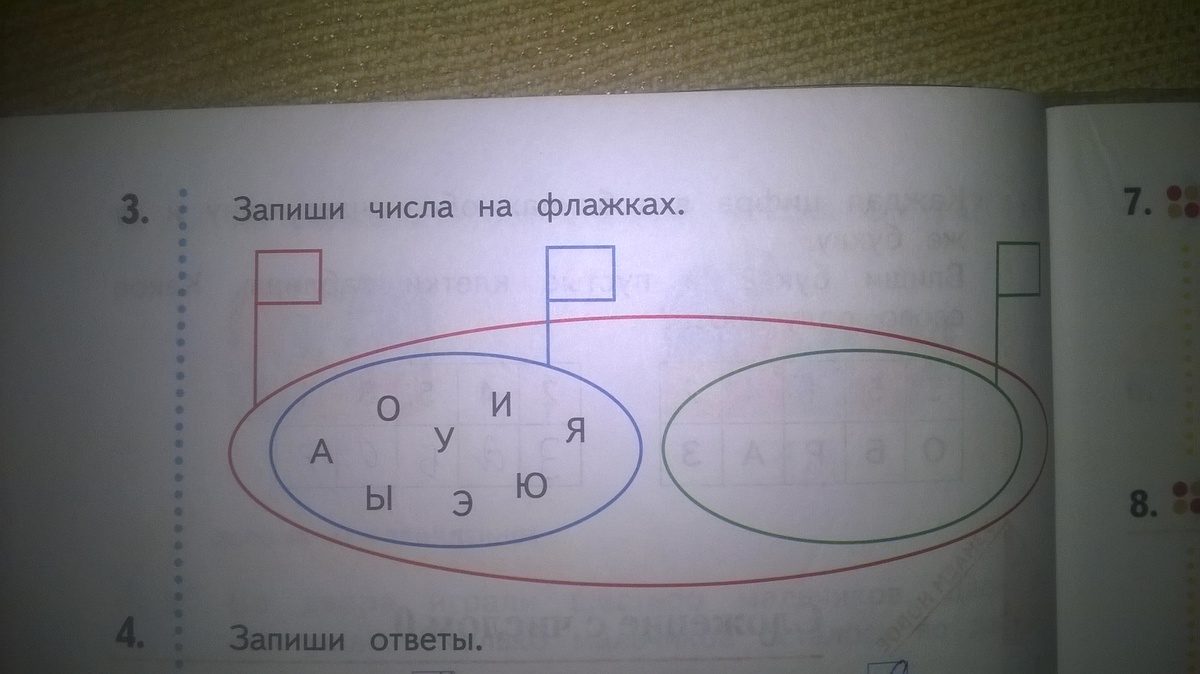 Возможно, что в синий флажок пишем 8 (столько букв обведено), в зеленый -0, так как там пусто... Ну, и в красный цифру 8, т.к. 8+0=8....