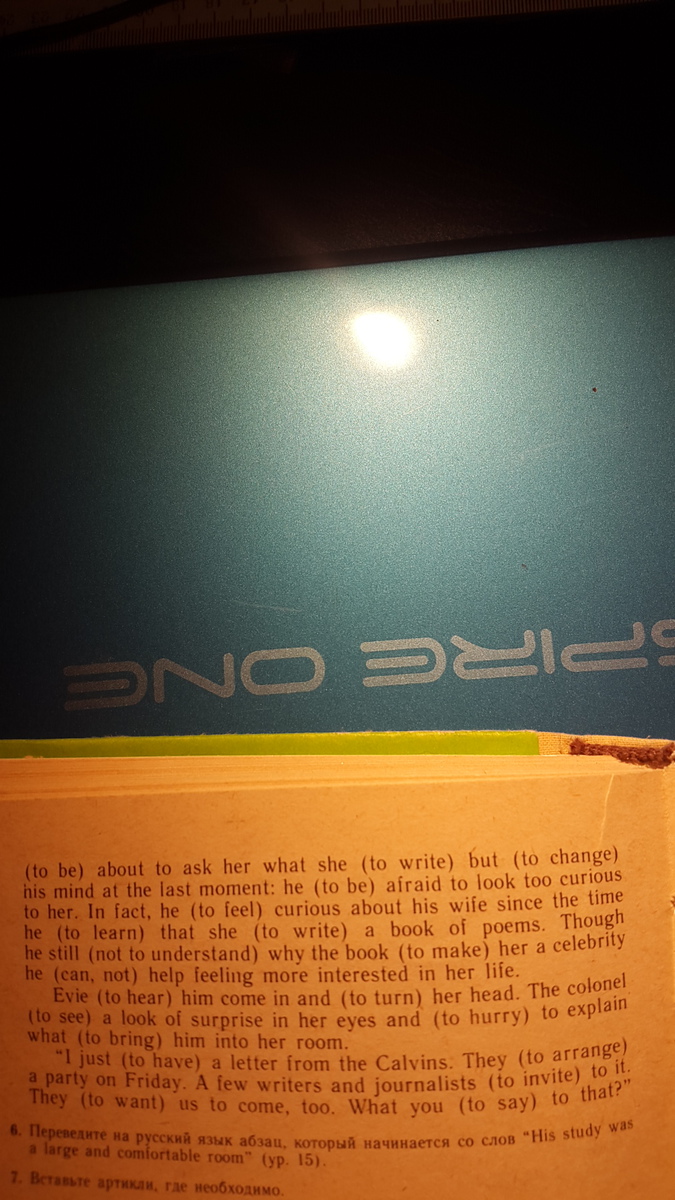 When Colonel Peregrine (to knock) at the door of his wife's room and (to enter), she (to sit) at her desk writing something. He... (остальное на фото)