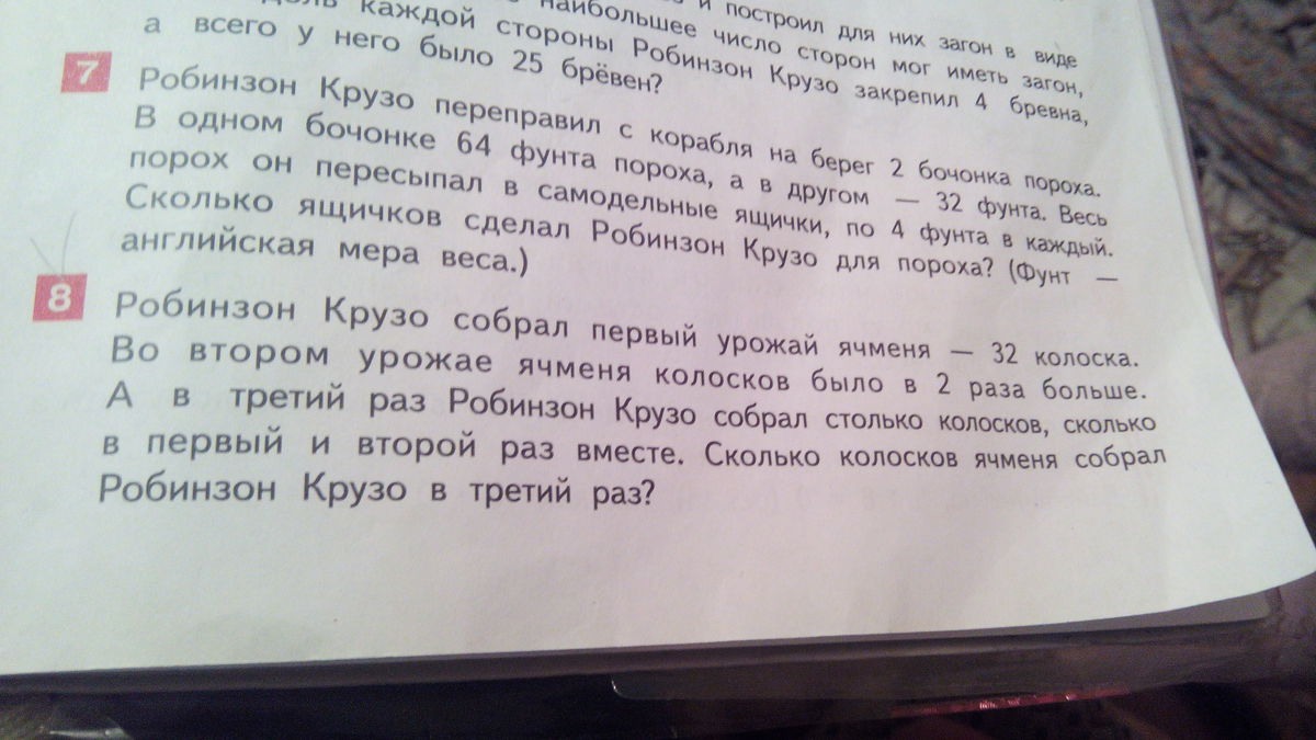 Ответ: 96 колосков Робинзон Крузо собрал в третий раз.