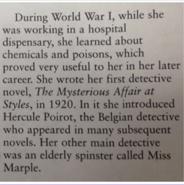 During World War I, Christie worked in a hospital, she learned about chemicals and poisons.