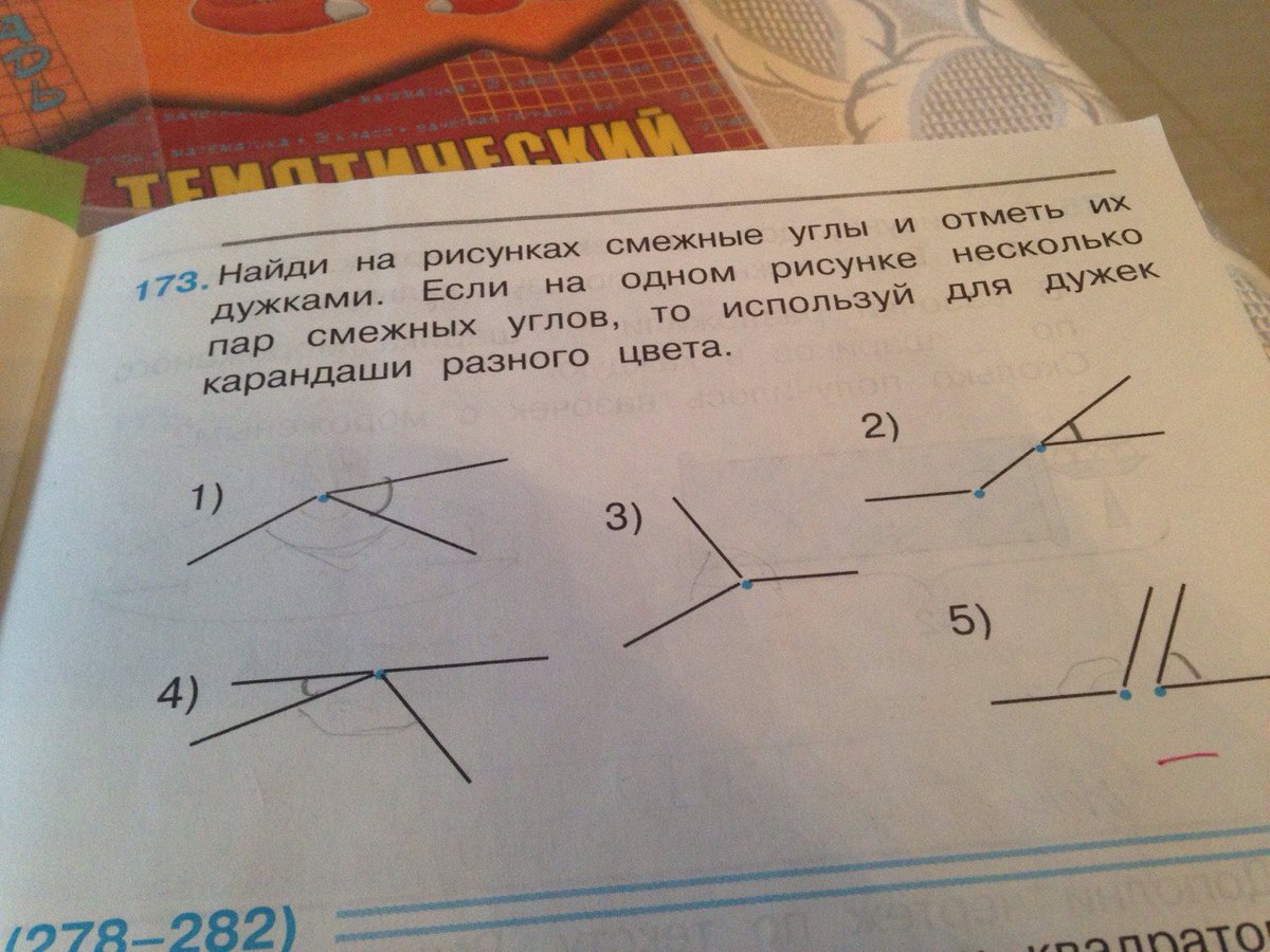 под цифрой 1,3, и под 4 там разными карандашами, потому что там несколько смежных углов, а под другими цифрами ни как не смогут быть смежными