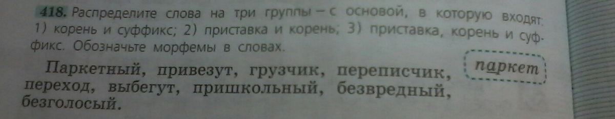 3)Переписчик(пере-приставка, пис-корень, чик- суффикс)