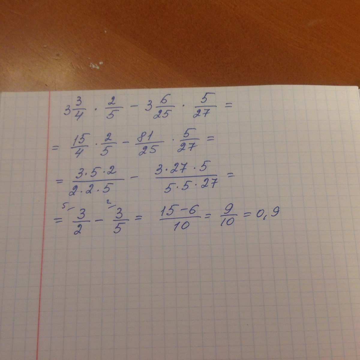 Помогите пожалуйста тут задание по математике задали вот само оно:Выполните действия: 3целых 3/4*2/5- 3целых 6/25*5/27