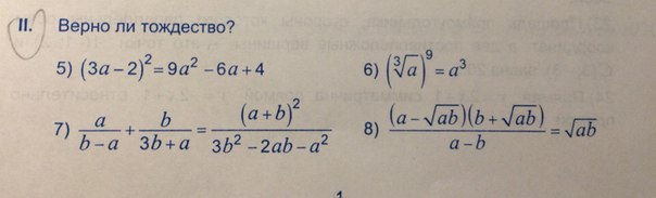 7.верно.приводим к общему знаменателю , потом подобніе и получаем верное тождество a*(3*b+a)+b*(b-a)=a*a+2*a*b+b*b - в числителе