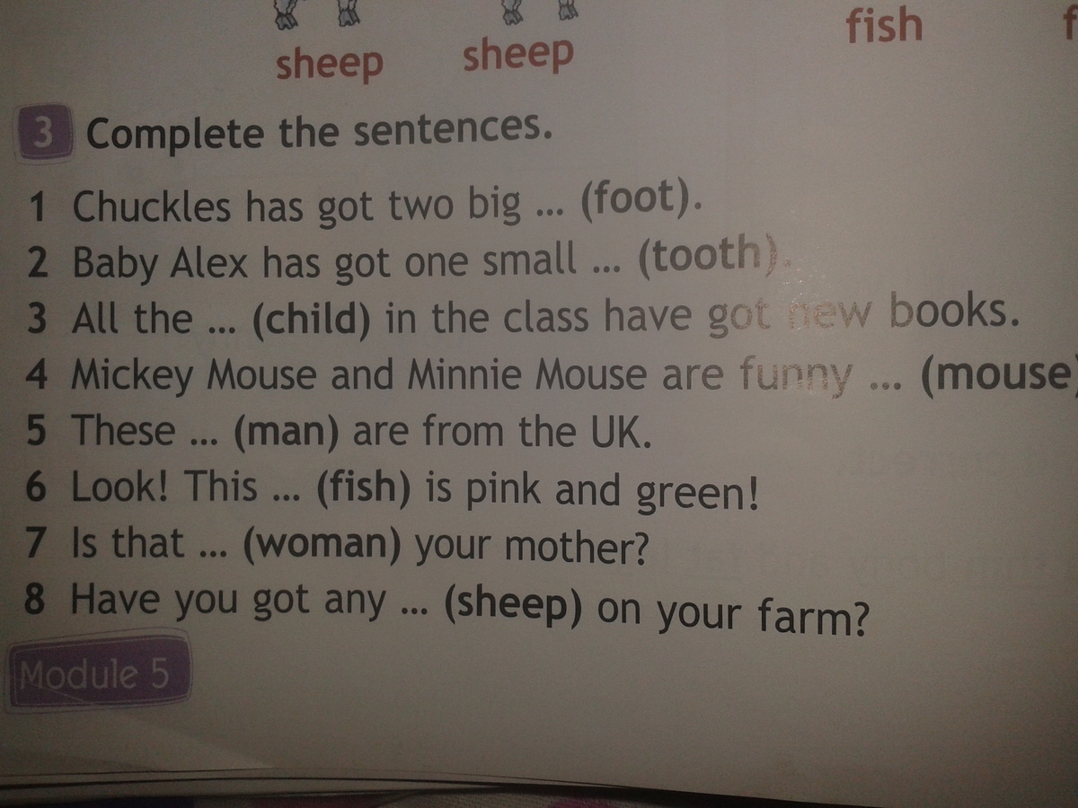 Feet,tooth,children,mice,men,fish,woman,sheep