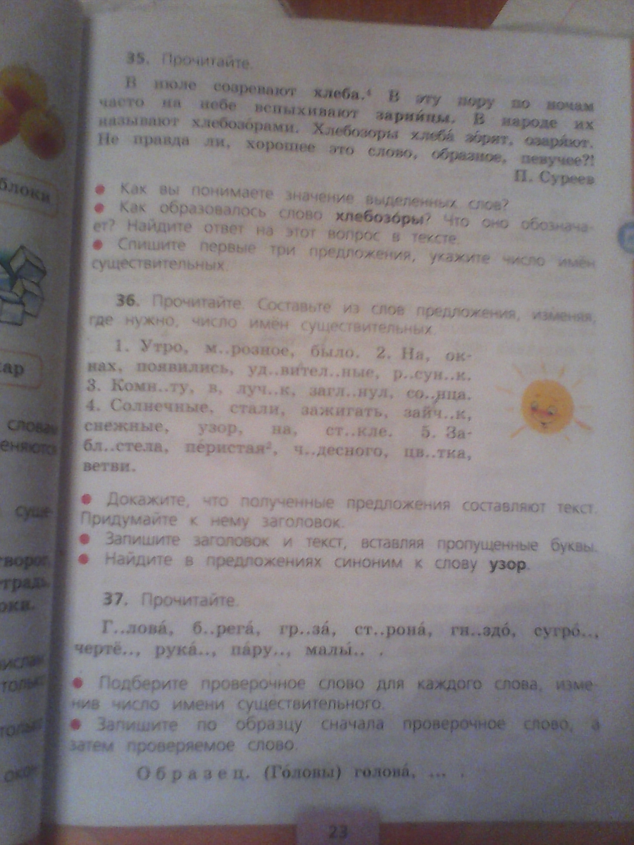 3) В комнату заглянули лучики солнца