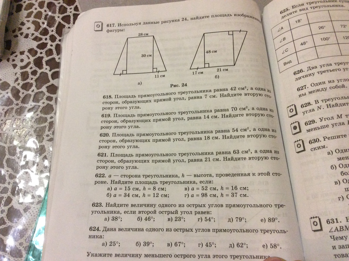 б) Фигура состоит из прямоугольника и двух равных прямоугольных треугольников. Площадь прямоугольника = 48*21 = 1008 см2; Площадь каждого треугольника = 1/2 48*17= 408 см2; Площадь всей фигуры = 1008+408+408= 1824 см2