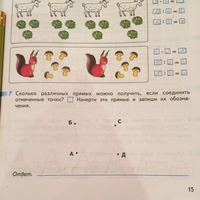 Сколько различных прямых можно получить, если соединить отмеченные точки? Начерти эти прямые и запиши их обозначения.
