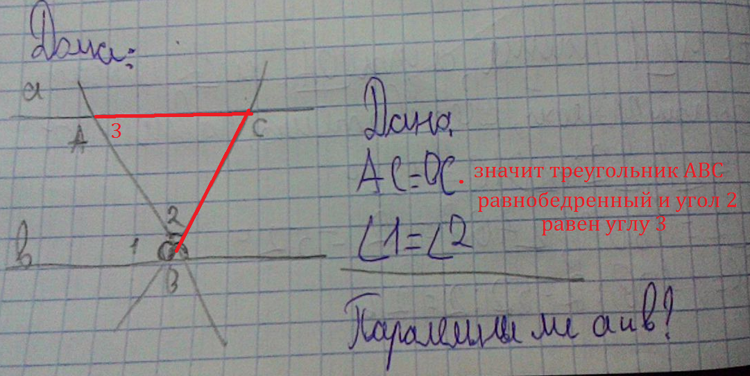 Значит, ∠1=∠3- а внутренние накрест лежащие углы