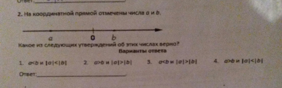 Число a расположено на координатной прямой слева от числа b ⇒ a < b