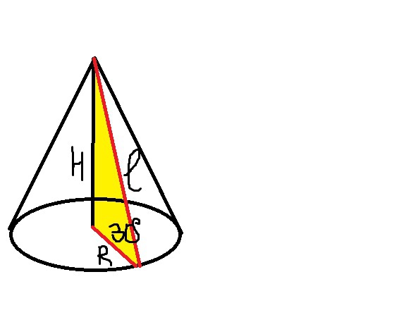 Радиус конус R =√(L² -H²) =√(L² -(L/2)²) =√(L² -L²/4) =√3L²/4= √3/2 L.