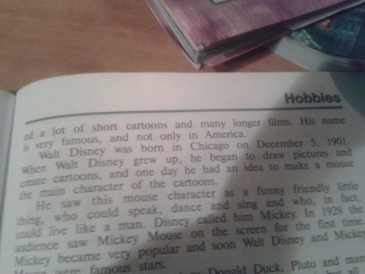 Walt Disney был рождён в Чикаго 5 декабря 1901.Когда Walt Disney вырос, он начал рисовать картинки и создавать мультики, и однажды у него появилась идея сделать мышку главным героем мультика