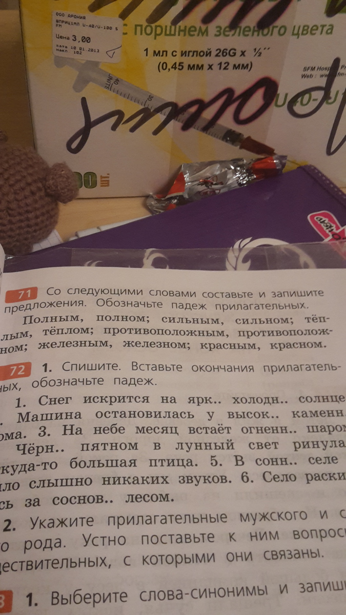 Со следующими словами составе предложения. Обозначте падеж прилагательных (только 71 номер). там всё видно.