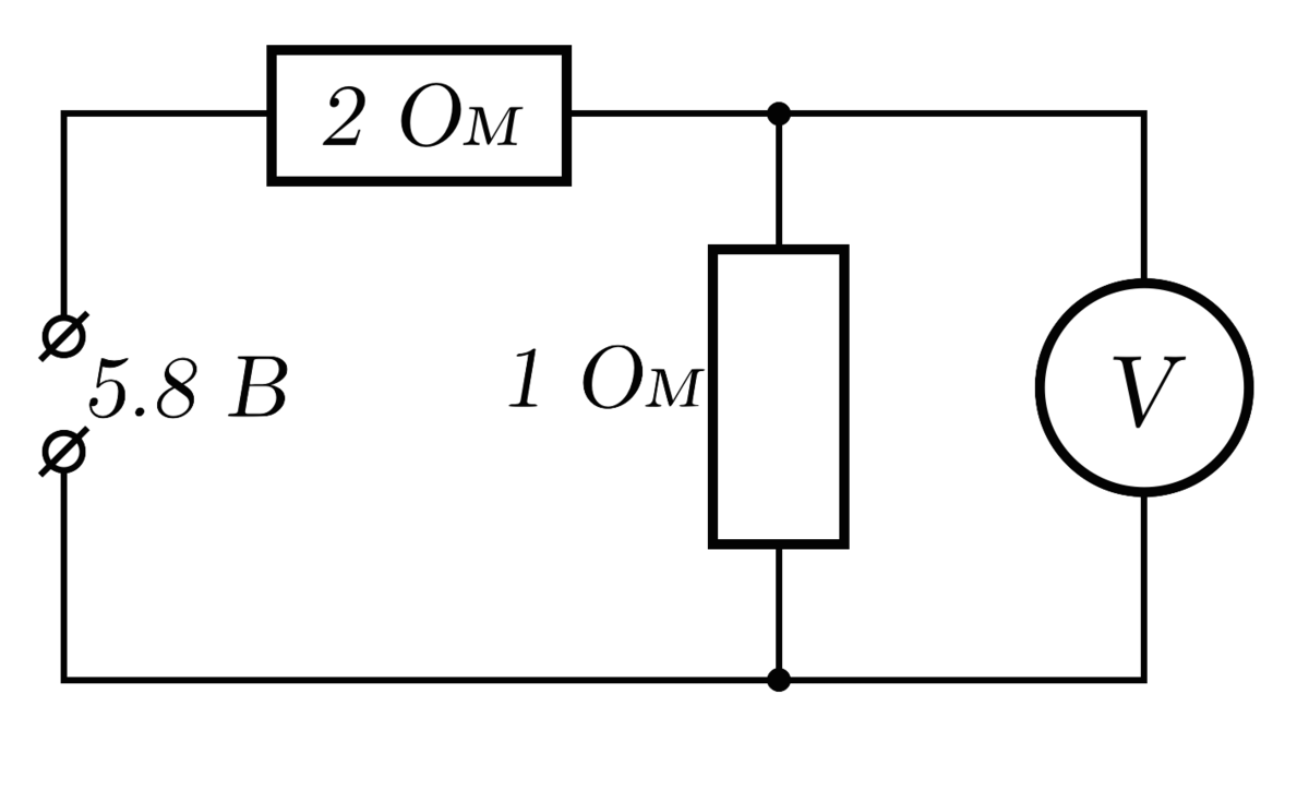 R1 =1Ом, R2= 2 Ом. U=5,8 В.