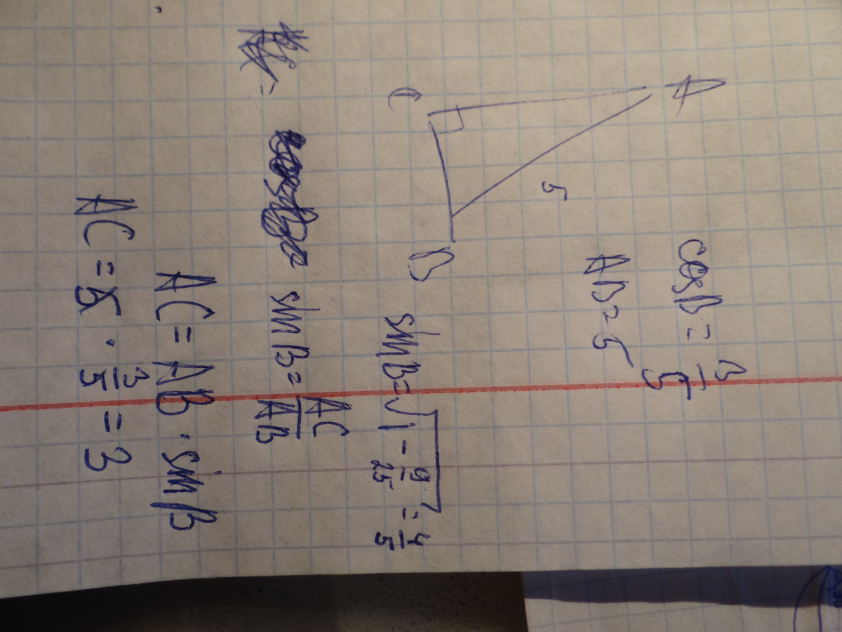 в треугольнике АВС угол с = 90 град, кос B = 3/5 АВ = 5. Найти АС знаю что дурак но забыл всё =) подскажите =)
