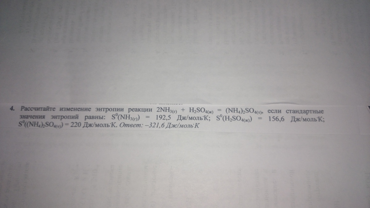 изменение энтропии=Sпродуктов - Sисходных с учетом коэффициентов