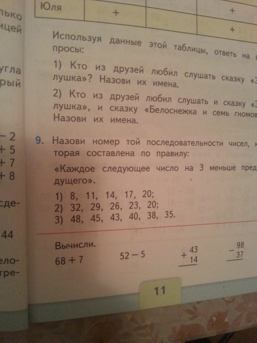 Каждое следующее число на 3 меньше, это значит, что каждый раз мы должны отнимать 3... вроде понятно объяснила :D