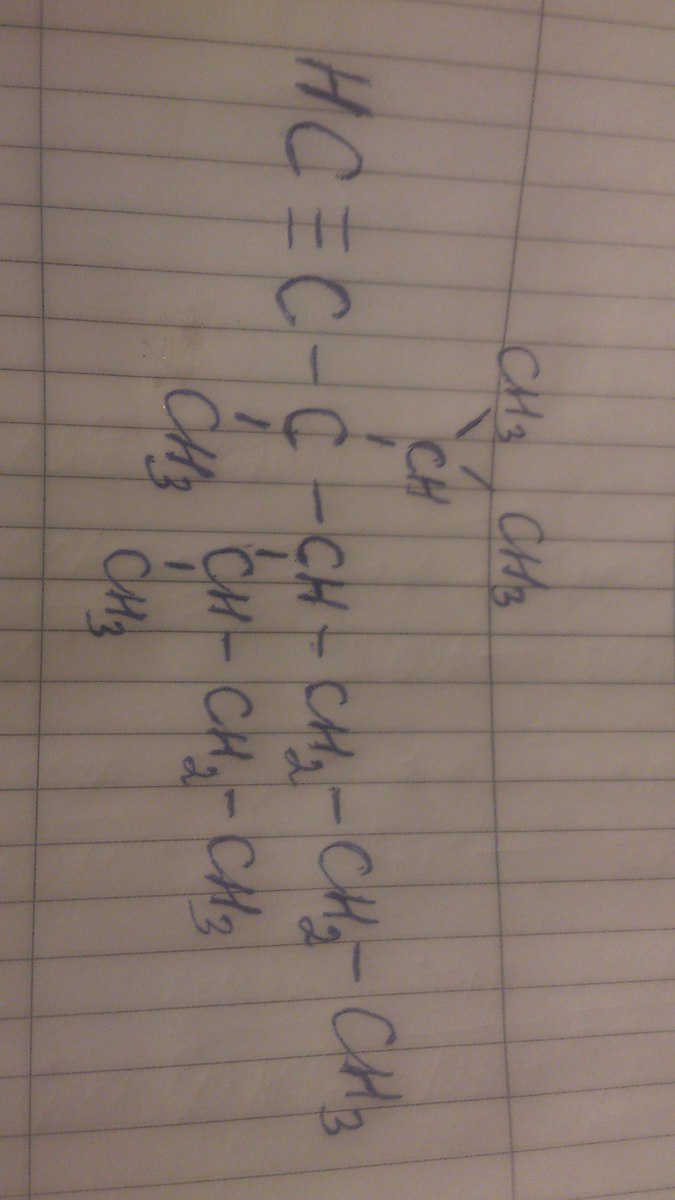 Напишите пожалуйста структуру формулу 3-метил-3-изопропил-4-вторбутилгептин-1 прошу помогите дали домашним заданием если не сделаю он двойку уже в журнал поставит