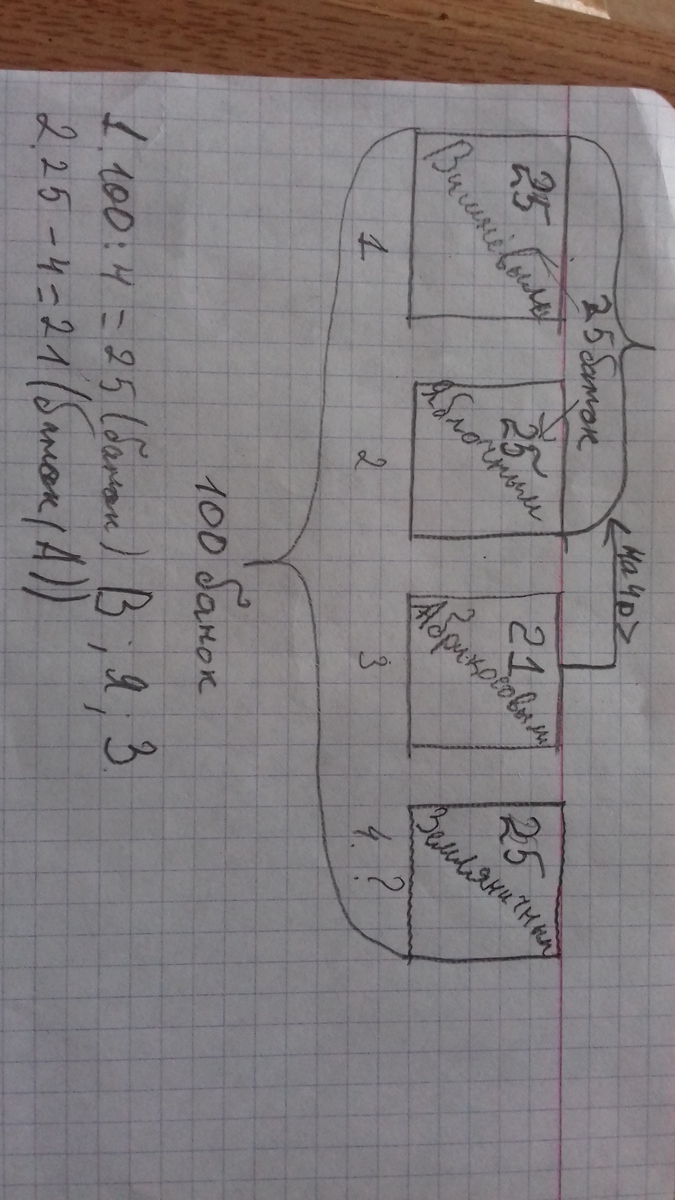 в шкафу стоят 100 банок с компотом: вишневым яблочным абрикосами и земляничным Вишневое яблочного компота 25 банок банок с абрикосовым компотом на 4 больше чем банок с вишневым и яблочным