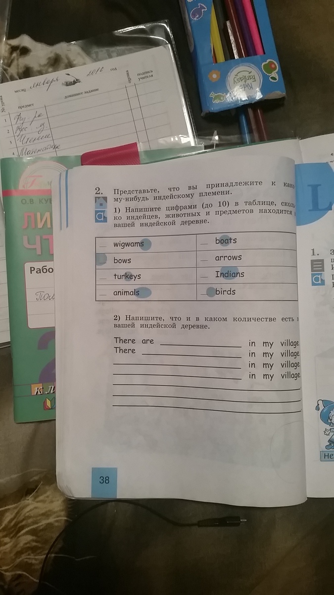можешь другие числа любые написать... в таблице - цифрами, а в предложениях буквами ( словами)
