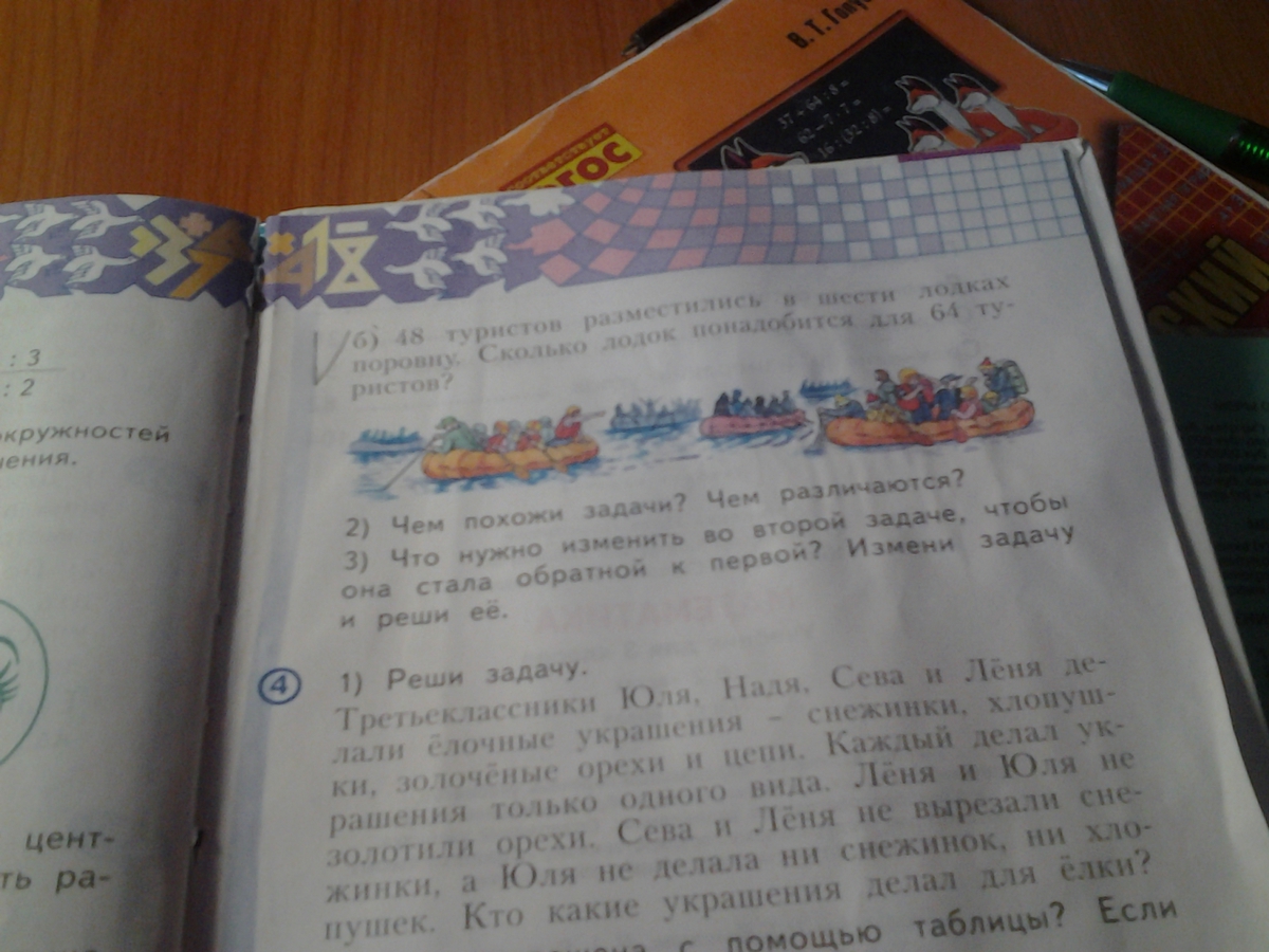 48:6=8 (по 8 туриста на 1 лодке) 64:8=8 лодок понадобится для 64 туристов