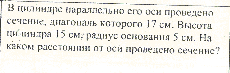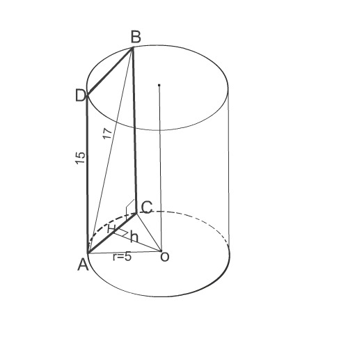Искомое расстояние - отрезок ОН в основании цилиндра.